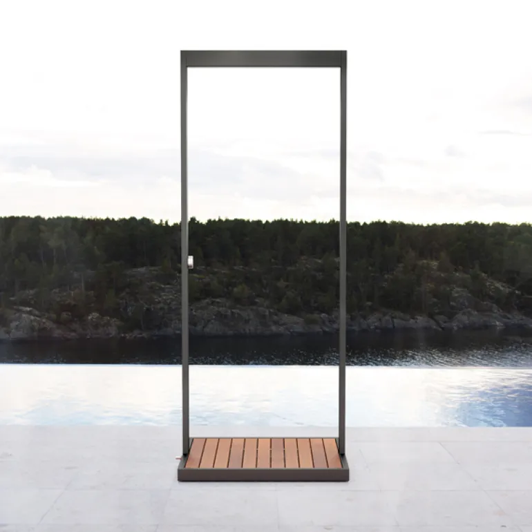 The stylish Garden outdoor shower is equipped with a baseplate made of teak. The perforated profile gives a lovely rain shower effect. The outdoor shower is easy to connect via standard connection.