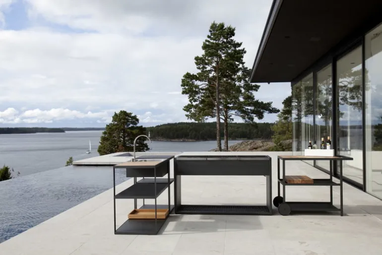 The Garden Trolley from Röshults is a robust trolley in plated powder coated steel and oak. It is equipped with two steel shelfs, top shelf in oak and wheels in steel. The trolley provides a perfect workspace and storage for your outdoor cooking. Röshults products create a timeless contemporary environment for homes, gardens and public places. Röshults products include outdoor furniture and barbecues that combine contemporary Scandinavian design and function, inspired by clean architecture lines. Ideal to furnish your garden or patio.