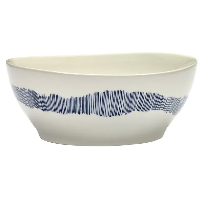 Serax’s Feast bowl is decorated with a pattern made of blue lines of different lengths and thicknesses. The elegant cup is perfect as a yogurt bowl for breakfast, a soup plate for dinner or for serving fruit, nuts, chips and other snacks at the dinner table. Outside the kitchen, the bowl can be used to store cosmetics, jewelry and other small treasures of home. The package contains four large bowls.