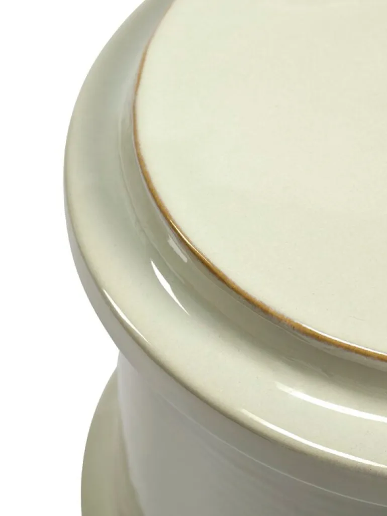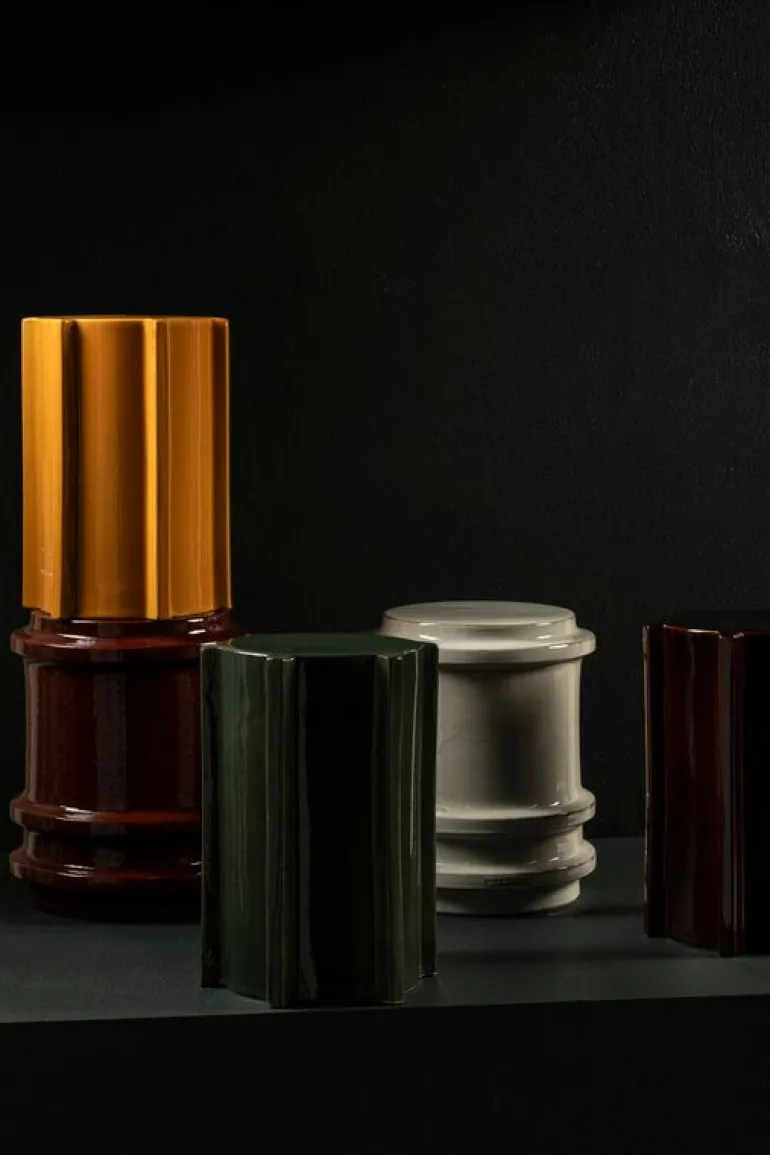 Serax’s Geometrical is a stoneware side table that can also function as a stool. Its strong material presence is accentuated by a glossy glaze and precise, geometric details.