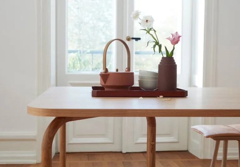 The Aldus table by Skagerak comprises a light look and a robust, solid oak structure that can seat six to eight people. Designer Chris Liljenberg Halstrøm sought inspiration for the six-legged design from traditional trestle tables. The tabletop has been coated with oak veneer and perfected with rounded corners. The timeless appearance of the Aldus table is well suited for contemporary and classic decors alike.