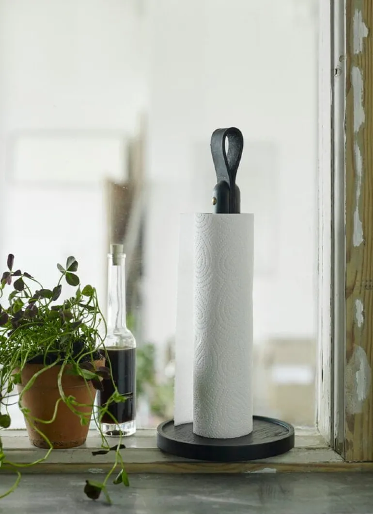 Norr paper towel holder by Skagerak provides an attractive oak base for a paper towel roll. The small leather and brass details add a charming touch to its appearance. The Norr paper towel holder was designed by Ditte Buus Nielsen.