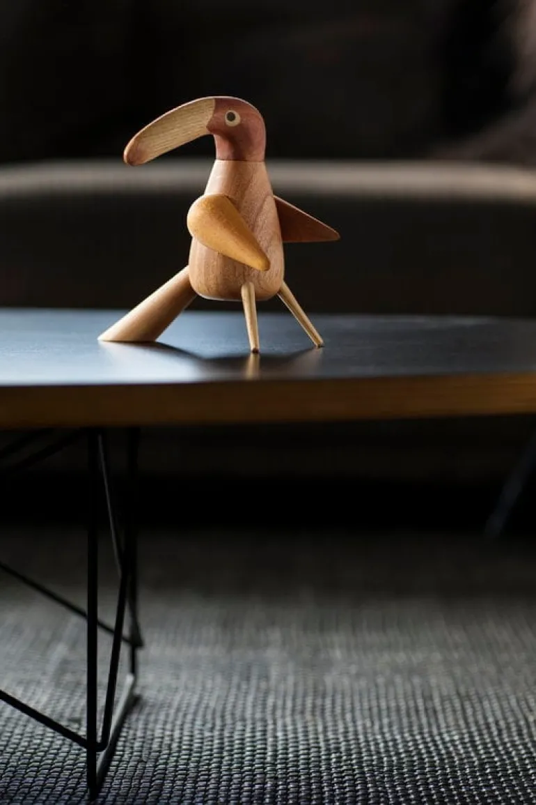 Spring Copenhagen’s The Pepper Bird grinder combines high quality and craftsmanship with playful and inventive design. The grinder, made of mahogany, ash, maple and walnut, works by rotating the bird’s head; the pepper is filled into the mill through the bird’s removable wing. Balanced on its feet and tail, the handmade, tucan-like Pepper Bird grinder will delight you both as a utensil in the kitchen and dining area and as a decoration on a bookshelf or chest of drawers.