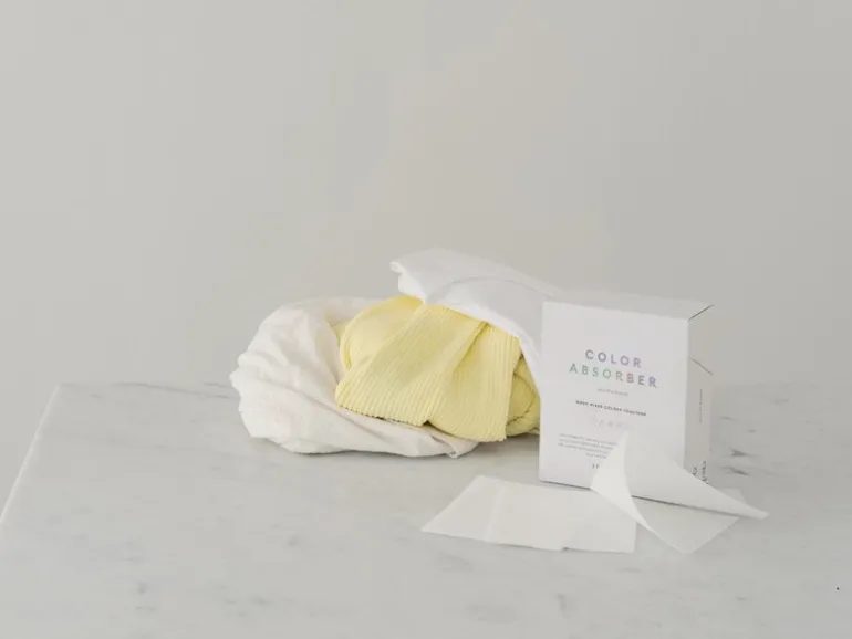 Steamery’s color absorbers allow you to was colorful and light-colored clothes together without having to fear discolouration. As their name suggests, the sheets absorb loose color pigments, preventing them from being transmitted to other textiles in the washer. However magical lifesavers the color absorbers may seem, they cannot absorb 100% of the color pigments – therefore, we do not recommend washing your lightest and darkest garments together, or throwing new red socks in the same wash with your favorite white shirt. New clothes should be washed with similar colors at least five times before mixing colors.