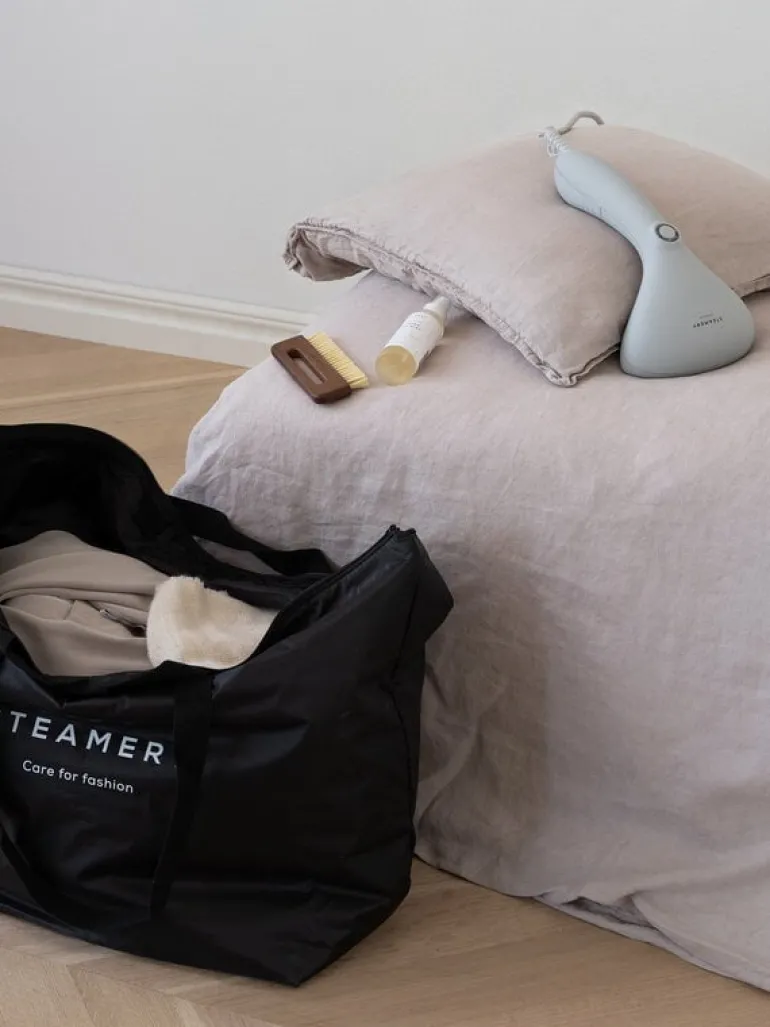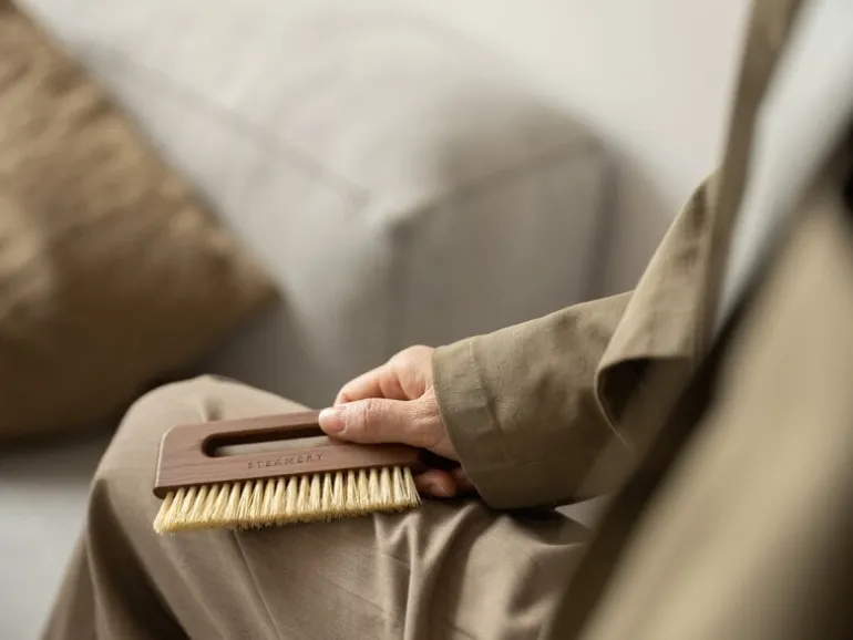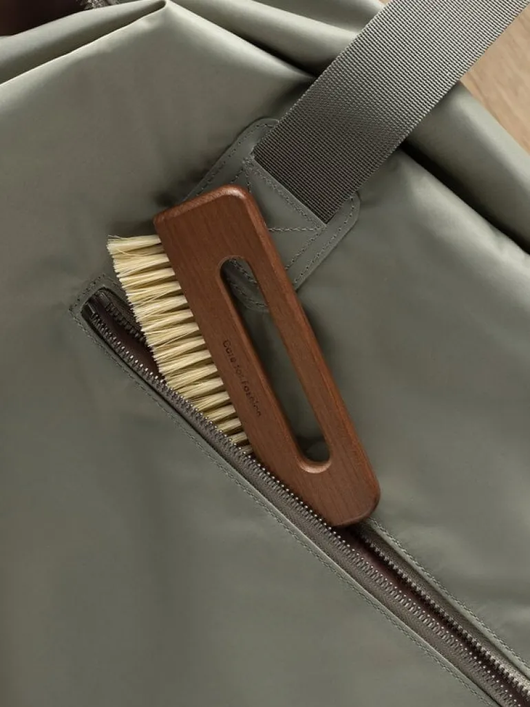 Steamery’s pocket brush cleans your denim and cotton garments or home textiles gently yet effectively, removing hair, dust and dirt with just a few strokes. The travel-sized clothing brush is suited for most materials except the most delicate ones like silk and chiffon. The brush is made from vegan, natural materials: oak and sisal fibers.