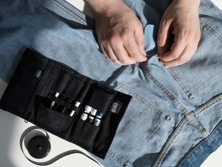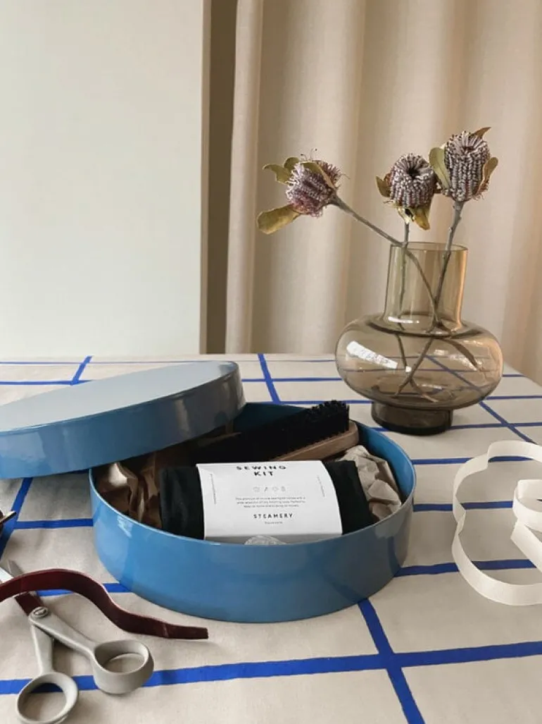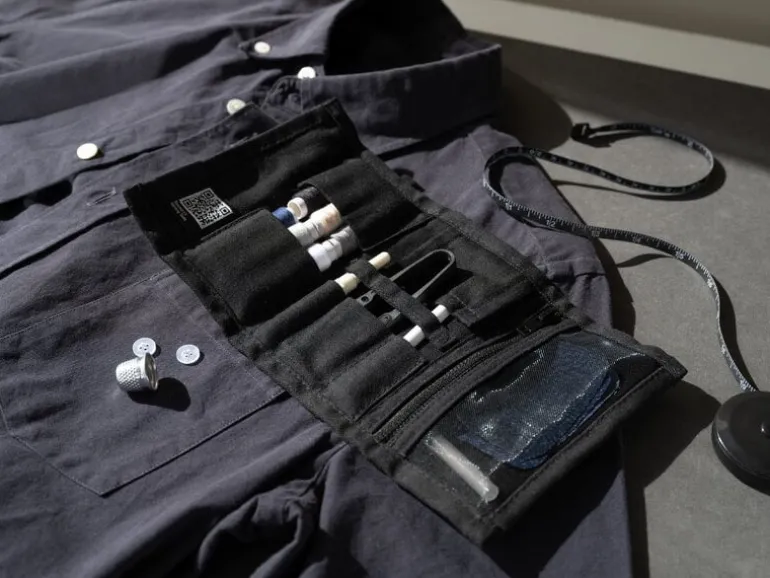 Steamery’s sewing kit is designed to help you take care of your garments yourself. Created in collaboration with professional tailors, the kit includes all the essential tools and supplies for repairing clothes, packed up in a neat roll-up case that you can easily pack in a suitcase when traveling, for example.