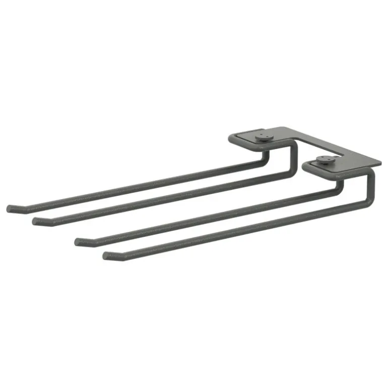 The String hanger rack is a multifunctional accessory for hanging wine glasses, utensils, towels, etc. The set includes two hanger racks that can be attached to the String metal shelves.