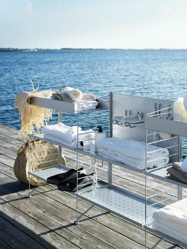The popular String System has taken a step outside – you can now furnish your patio, balcony or outdoor wall with the String Outdoor shelves and panels. They are made of stainless, galvanized metal that will age beautifully over time. The versatile modular shelving system can be expanded in numerous different ways.
