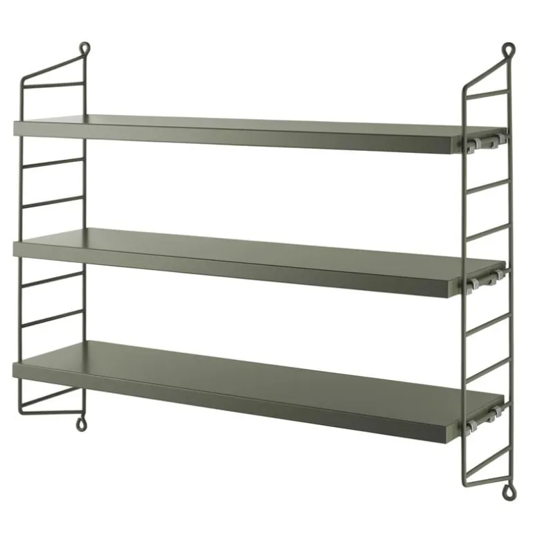 String Pocket is a compact and elegant shelf for books, collectables and other small items. Launched in 2005 by the Swedish manufacturer String, String Pocket is part of the popular collection designed by Nils Strinning in 1949. The minimalist design consists of three shelves and two ladder-like side panels that can also be combined into larger units both vertically and horizontally. String Pocket is available in an array of colors and suitable for multiple uses and spaces.