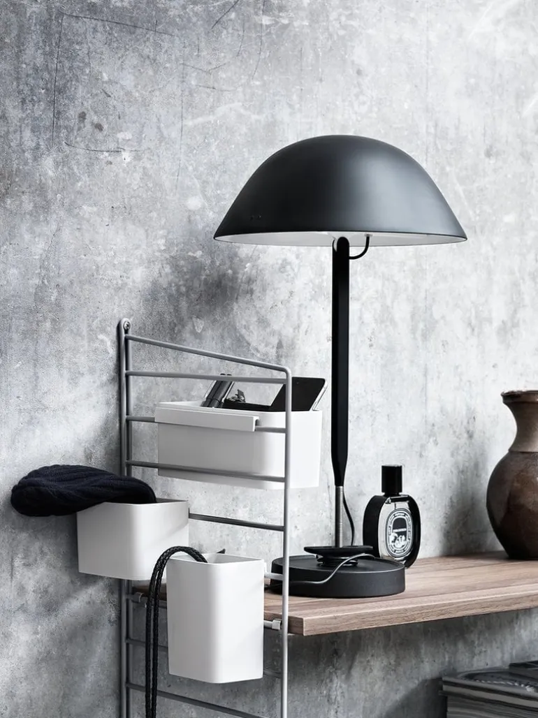 String System is a flexible shelving system that Swedish architect Nils Strinning designed in 1949. The signature ladder-like side panels can be combined with shelves, magazine shelves, work desks, folding tables, chests and cabinets to form a system that best suits your needs. The timeless and minimalist design of String System is perfect for both contemporary homes and offices.