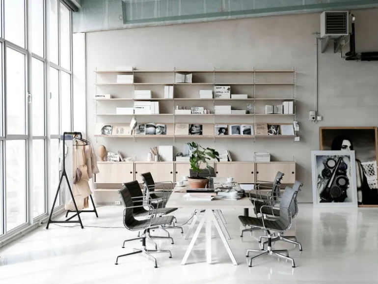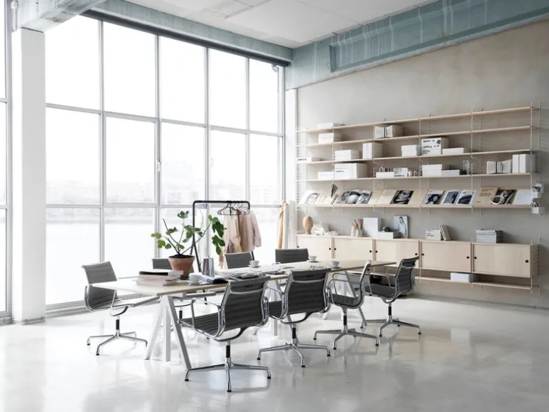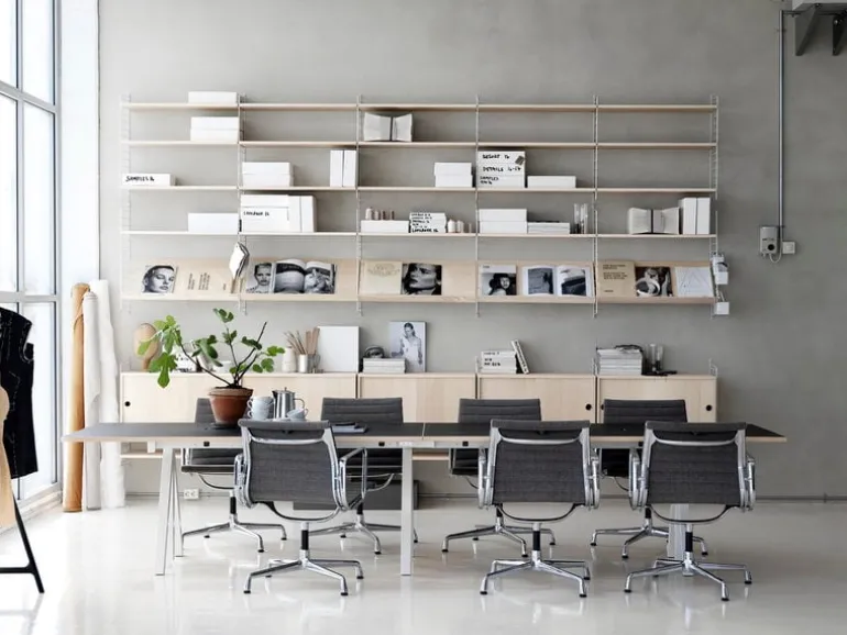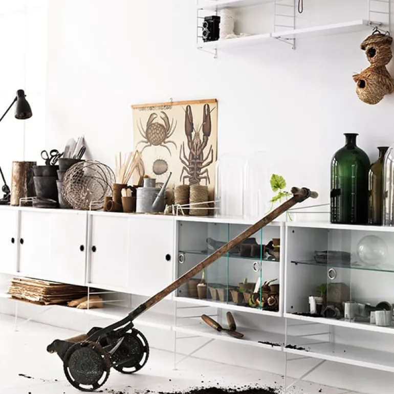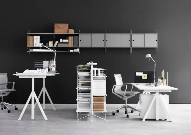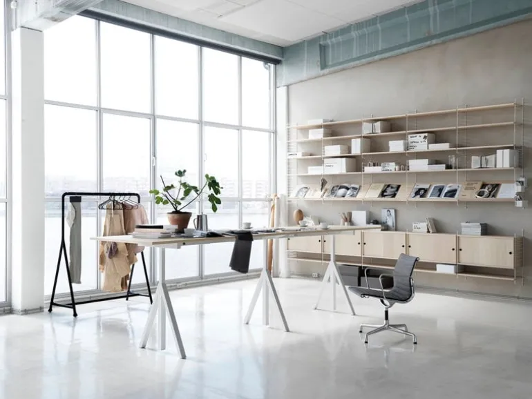 String System is an iconic modular shelving system that was originally designed by Swedish architect Nils Strinning back in 1949. The signature ladder-like side panels can be combined with different shelves, magazine racks, work desks, folding tables, chests and cabinets, allowing you to create a customized system that best suits your needs. The timeless and minimalist design of the String System makes it an ideal choice for modern homes and offices, and the versatile shelving system can be endlessly expanded both vertically and horizontally. String Furniture remains dedicated to designing and manufacturing its products in Sweden.