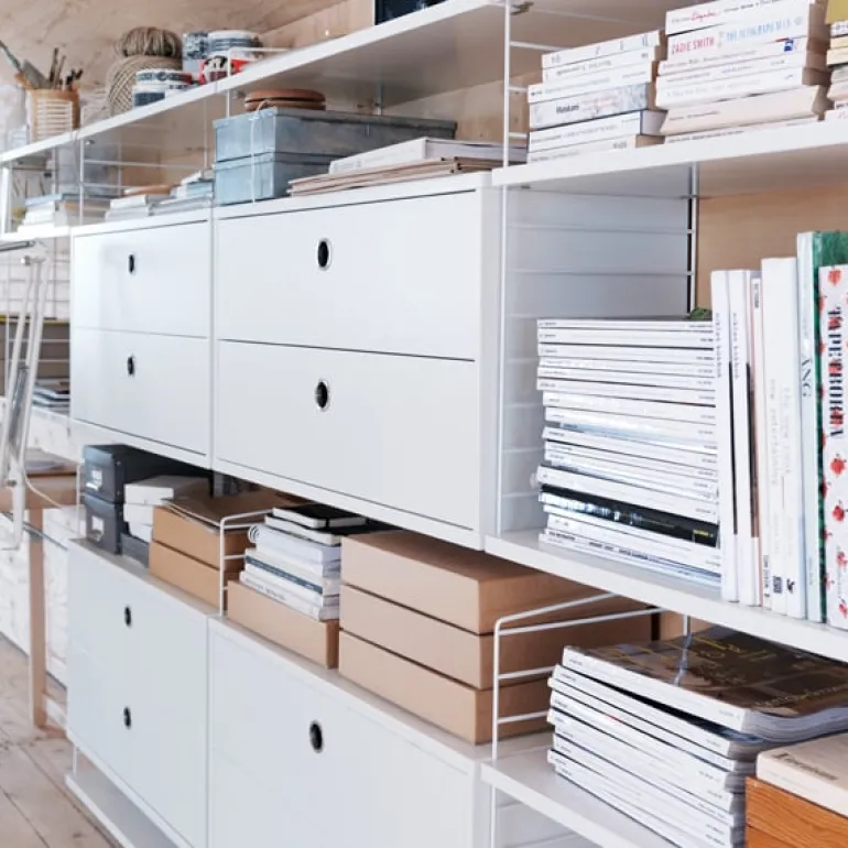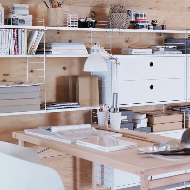String System is an iconic modular shelving system that was originally designed by Swedish architect Nils Strinning back in 1949. The signature ladder-like side panels can be combined with different shelves, magazine racks, work desks, folding tables, chests and cabinets, allowing you to create a customized system that best suits your needs. The timeless and minimalist design of the String System makes it an ideal choice for modern homes and offices, and the versatile shelving system can be endlessly expanded both vertically and horizontally. String Furniture remains dedicated to designing and manufacturing its products in Sweden.