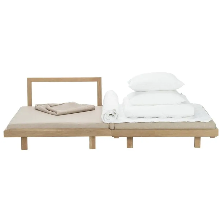 Tapio Anttila Collection’s Day&Night chair bed hides more than you might expect from the outside. Looking like a minimalist lounge chair, the chair bed’s oak frame and mattress can be transformed into a full-size bed by simply lifting the upper part of the frame on the floor. The bedding for the bed is hidden inside the cushions.