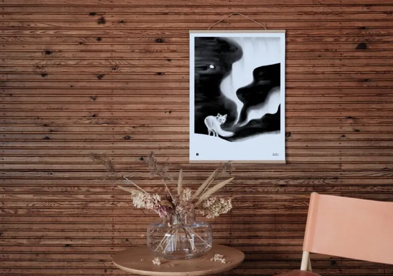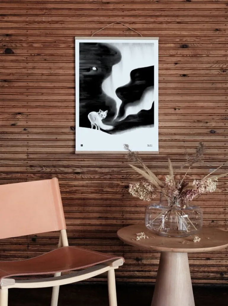 Teemu Järvi’s Firefox poster features an art print of a fox strolling under the glow of the northern lights. According to Finnish folklore, the aurora borealis is created when the fiery foxes with their shimmering fur light up the fells with their sparks. Measuring 19.69 x 27.56 x 0 in (50 x 70 x cm, cm), the poster is offset printed in Finland on 5.29 oz (150 g) uncoated paper. Finish the natural look with Teemu Järvi’s wooden poster frame, available separately; this poster is perfect for the 19.69 in (50 cm) frame.