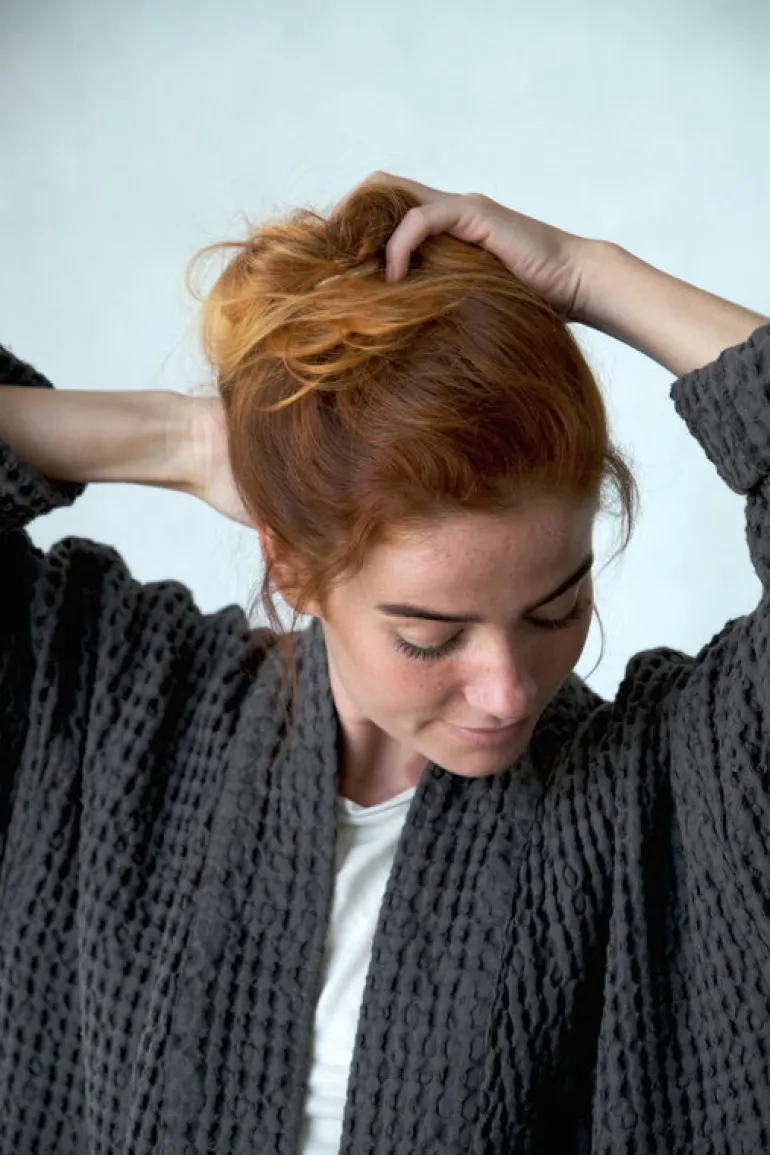 The Organic Company’s Big Waffle bathrobe adds a modern, relaxed touch to your bathroom or home spa. The unisex bathrobe will suit anyone, thanks to double loops in the back that ensure a firm yet comfy fit. The bathrobe is made of GOTS-certified cotton that feels soft and gentle against the bare skin.