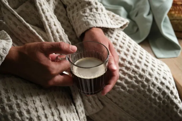 The Organic Company’s Big Waffle bathrobe adds a modern, relaxed touch to your bathroom or home spa. The unisex bathrobe will suit anyone, thanks to double loops in the back that ensure a firm yet comfy fit. The bathrobe is made of GOTS-certified cotton that feels soft and gentle against the bare skin.