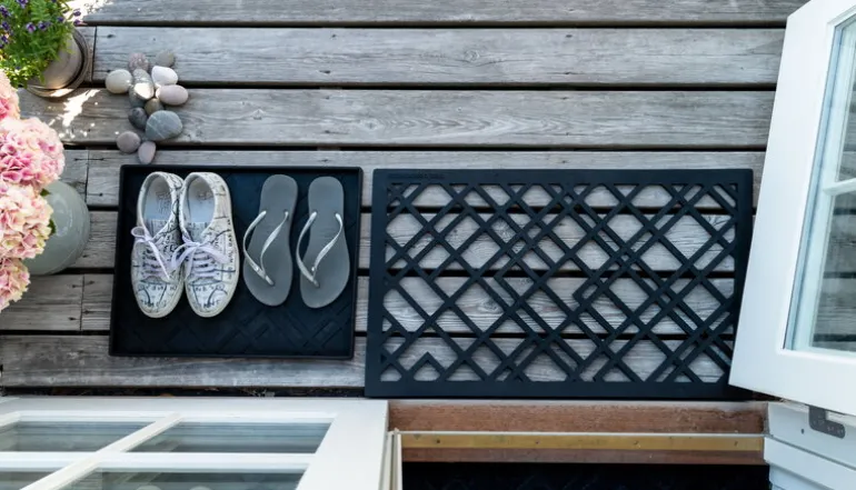 Tica Copenhagen’s Lines doormat is a beautiful and practical addition to both the hallway and even outdoors – the sturdy doormat is designed for both indoor and outdoor use. Made of dense rubber the Lines doormat stays firmly in place on all types of surfaces and is easy to clean by vacuuming or rinsing.