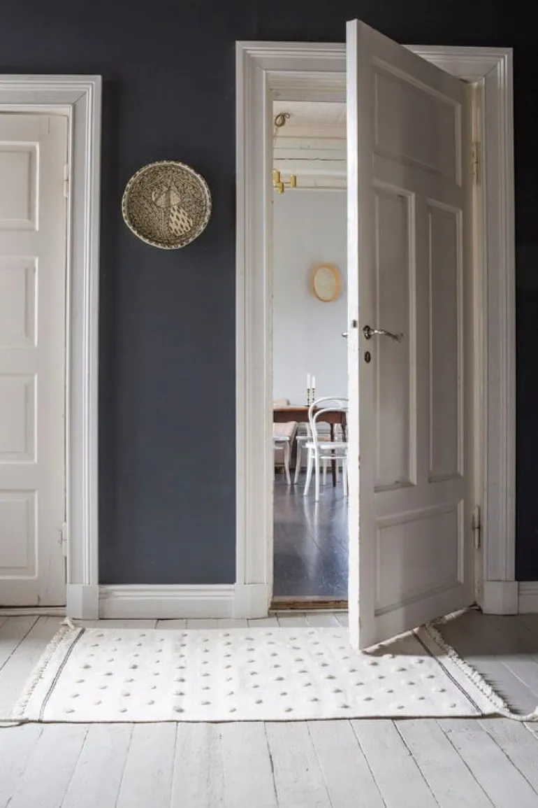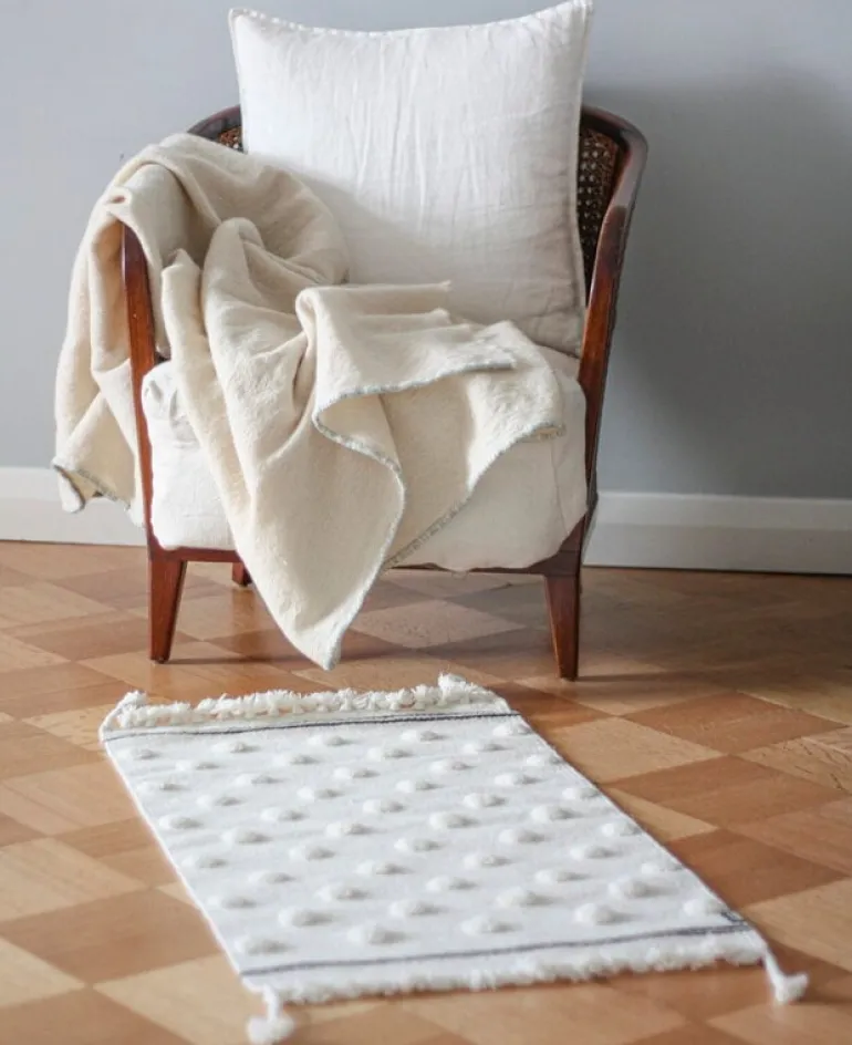 Tikau’s hand-woven Pallo rug features a fun, three-dimensional dotted pattern created by using a pile technique. Finished with relaxed fringes the woolen Pallo carpet introduces a soft and jovial mood to the décor – and it feels even softer than it looks! Made from natural wool, the carpet still has a protective coat of lanolin intact making it perfect for all spaces, including the hallway and bathroom. The Pallo carpet would also look stunning hung on the wall.