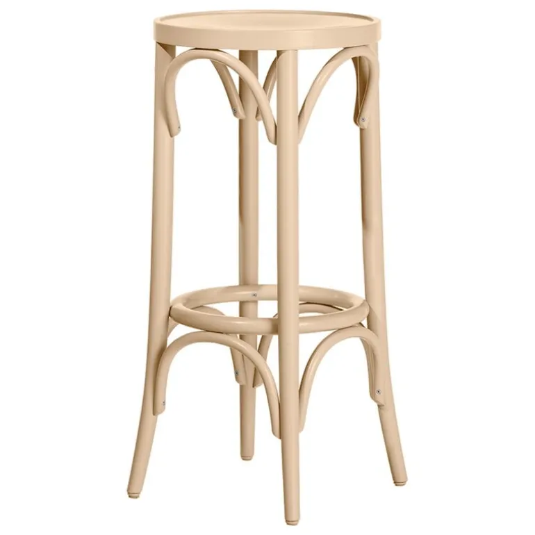 Barstool 73 by TON is characterized by a curved and delicate silhouette inspired by traditional café chairs. The classic barstool is still manufactured at the TON furniture factory in Czech Republic by traditional methods: the robust frame is decorated with eight beechwood rods that have been bent by hand.