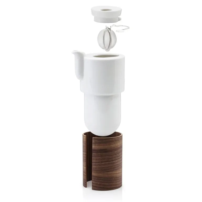The 20.29 fl oz (6 dl) teapot from Tonfisk Design’s Warm collection enchants with a smooth combination of porcelain and wood. The white porcelain teapot comes with a ceramic lid, wooden sleeve and metal strainer. The porcelain pot is dishwasher safe, and the removable wooden sleeve can be wiped with a damp cloth and oiled from time to time.