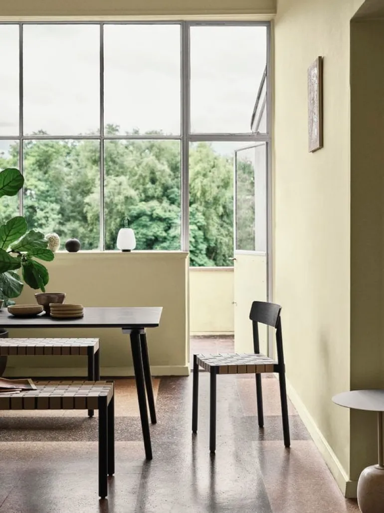 Designed by Jakob Thau and Sami Kallio for &Tradition, Betty TK4 is a solid wood bench with a linen webbing seat. The combination of the wooden surface and natural linen gives the bench an organic feeling, and the flexible and supporting webbing is pleasant to sit on. The stable and lightweight structure makes the Betty bench perfect for the dining space or any other room of the house.