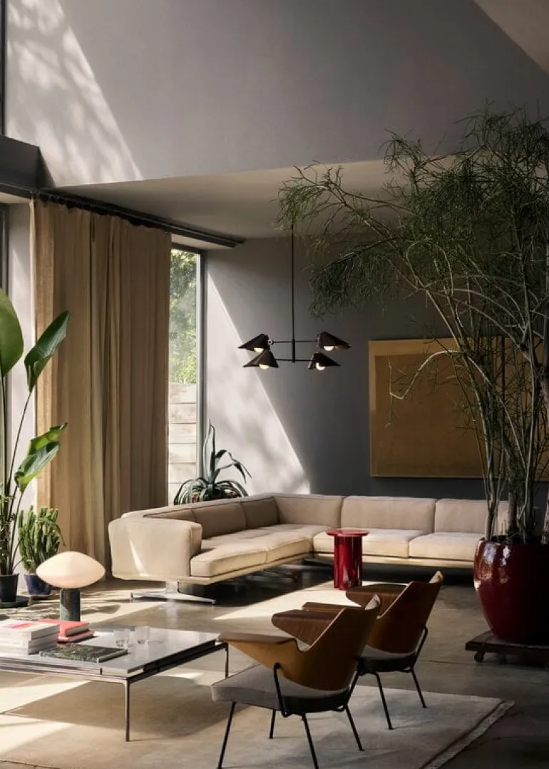 &Tradition’s Bonnet SC92 chandelier exudes simple elegance. Designed by Space Copenhagen, the modern chandelier gets its character from the sleek, curved aluminum shades that can be rotated up to 180 degrees. This allows the light to be directed with extreme precision to up, down or anything between, according to the current need, space, and mood. Thanks to its versatility, the striking and sculptural Bonnet luminaire is perfectly suited for placement above both dining tables and seating areas.