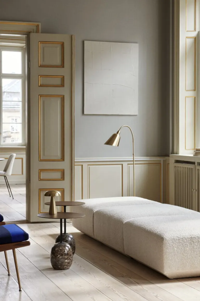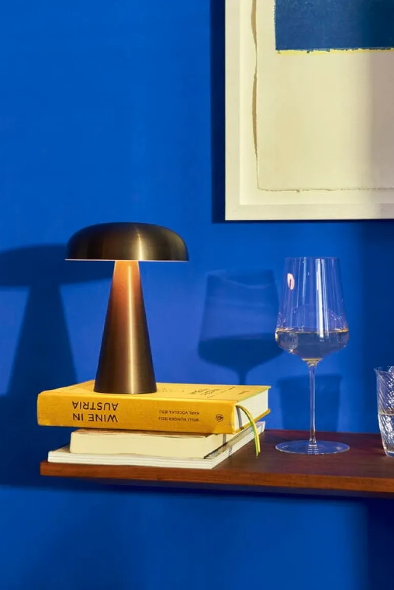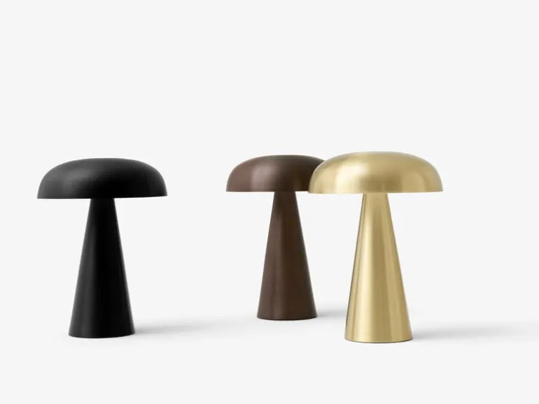 &Tradition’s Como SC53 is a rechargeable, portable table lamp designed by Space Copenhagen. Made of aluminum, the Como lamp is composed of a cone-shaped base with a wide shade that directs the light downwards and to the sides. Thanks to the 3-level dimmer, Como can be used as a reading light or a mood light.