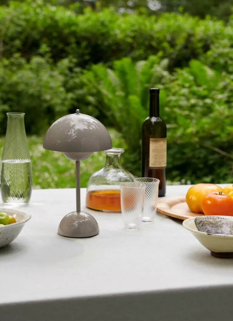 The portable VP9 is slightly smaller than the original table lamp, making it easy to carry from one place to another. You can charge the VP9 lamp using a magnetic USB cable or a separately sold charging base. One charge provides light for about 10 hours at the highest setting. The cordless luminaire is easy to move from one place to another as needed – it is ideal for a cottage, garden dinner or other non-electric space. The three-step dimmer ensures that the light intensity is always the right one, whether you use the Flowerpot VP9 luminaire indoors or outdoors.