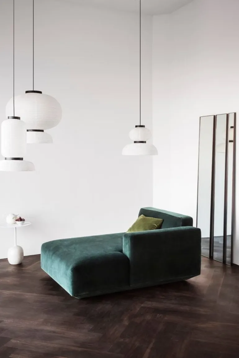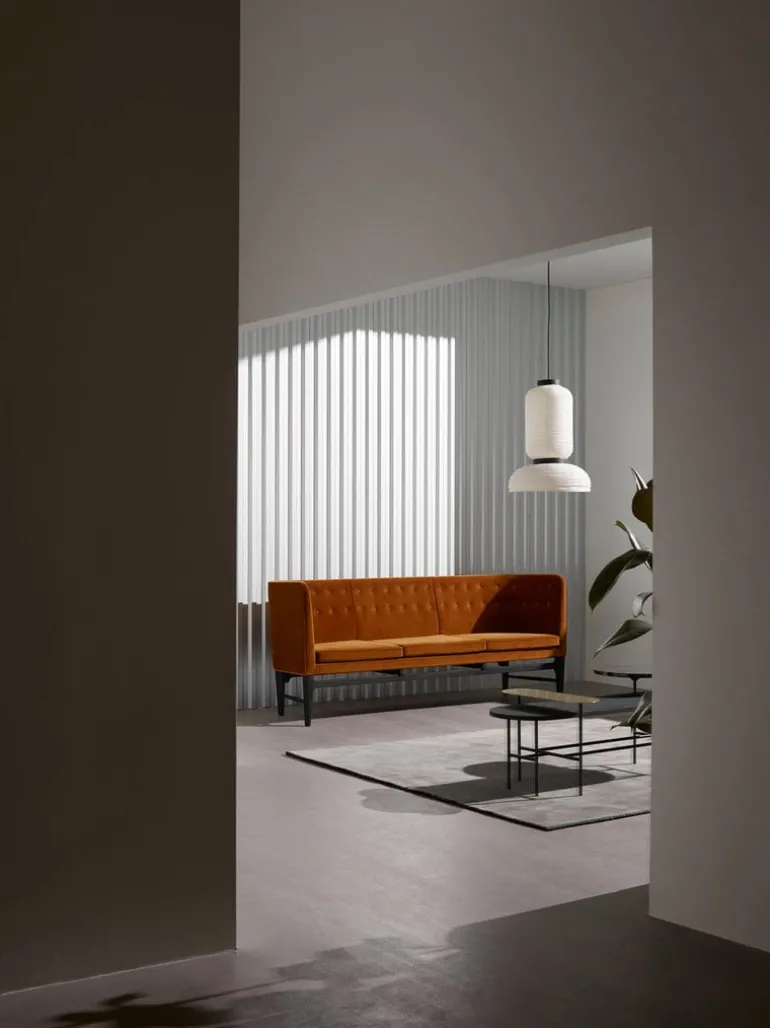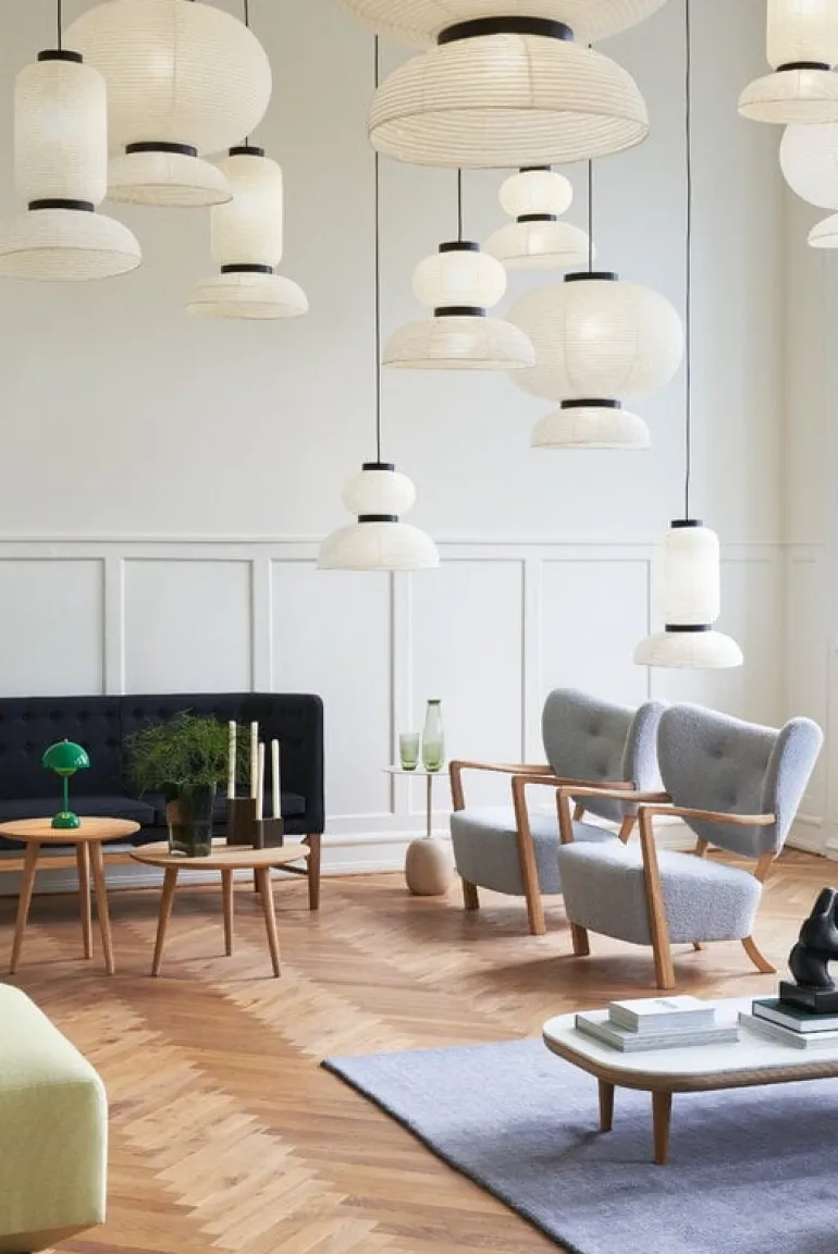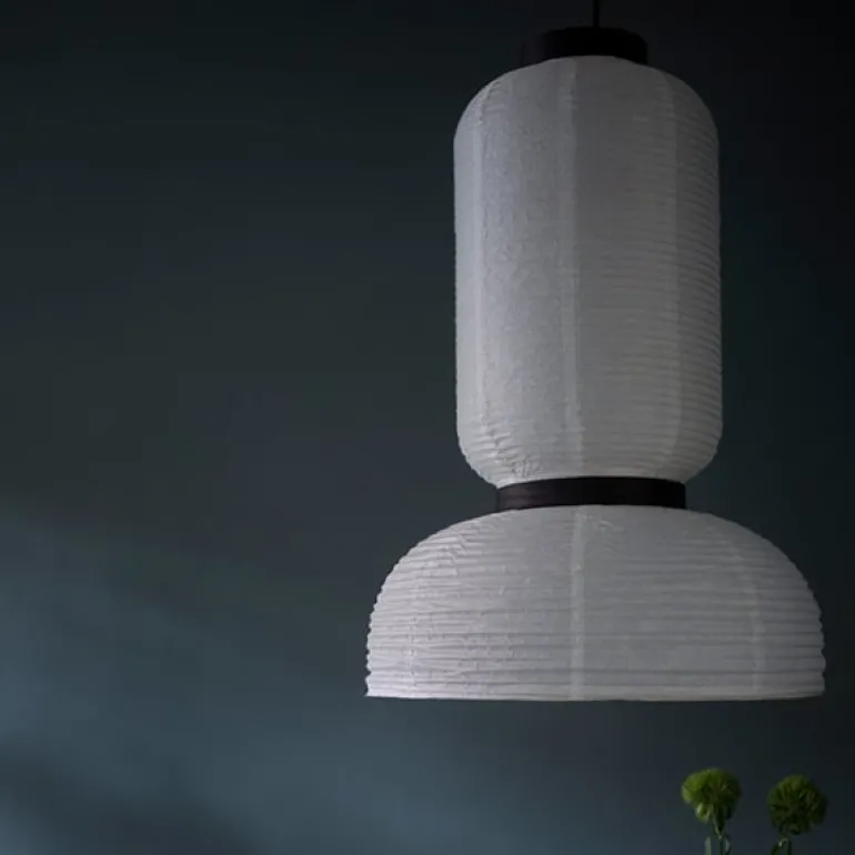 &Tradition’s Formakami JH3 pendant light is Jaime Hayón’s modern take on classic Asian paper lanterns. His aim was to create a light pendant that illuminates people’s lives both literally and symbolically. The white color of the shade emphasizes the lightness of rice paper and the open bottom maximizes the amount of light. Black stained oak rings give Formakami’s handmade shade a pleasant rhythm. Hayón, known for his playful designs, has combined round shapes in different sizes, and the end result is a collection of three unique pendant lights.