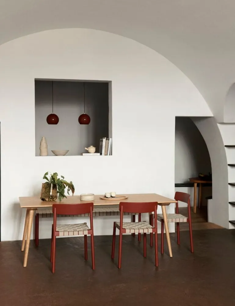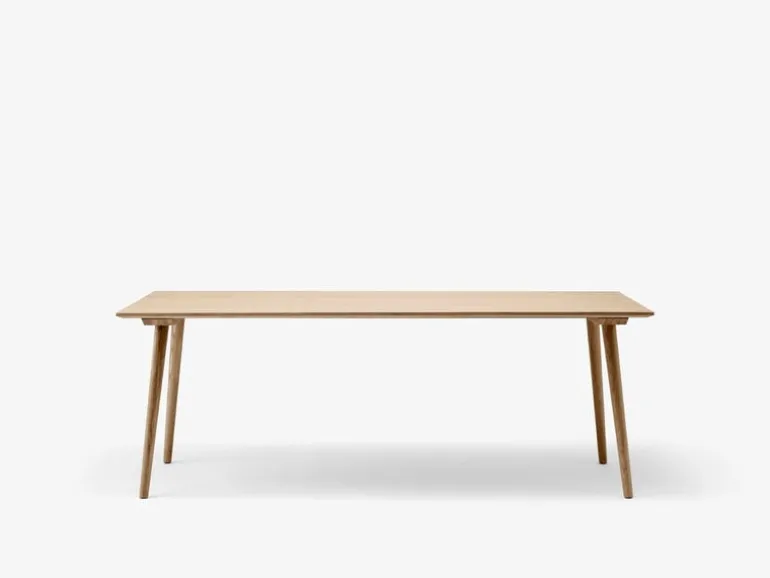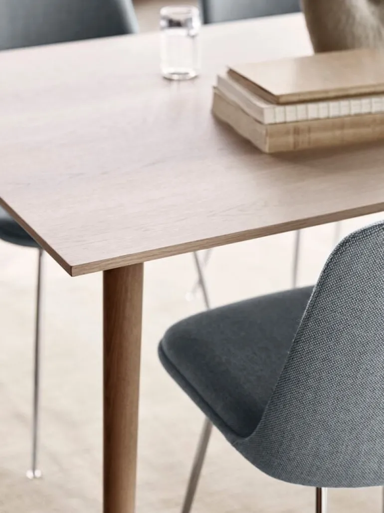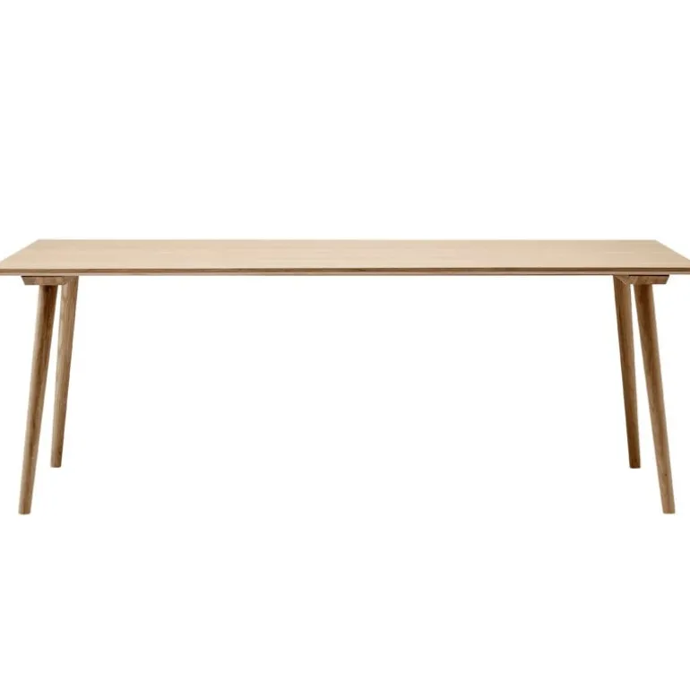 &Tradition’s In Between dining table is an elegant addition to the wooden furniture collection designed by Sami Kallio. The large, rectangular In Between SK5 table repeats the shapes and sloping legs of the In Between chairs. A result of designer Kallio’s love for Scandinavian heritage and woodworking, the In Between table is made of strong and characterful oak wood with traditional techniques such as woodturning. The innovative veneer techniques and detachable legs give the table a modern finish and allow it to be transported and stored flat-pack.