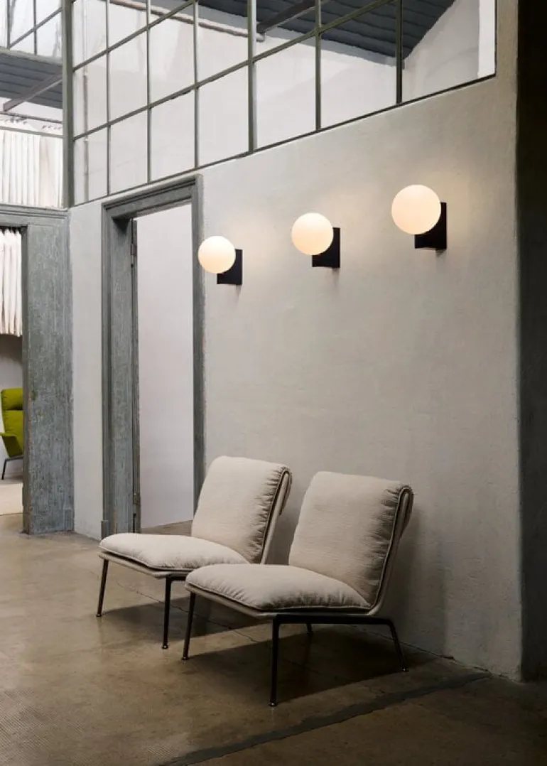 &Tradition’s Journey SHY2 lamp, designed by Signe Hytte in 2018, is a surface-mounted wall lamp with a clean, fresh look. The design of the Journey lamp merges together two timeless, basic geometrical elements: a sphere and a rectangle. The round, opal glass lampshade is reminiscent of a softly glowing moon, and the rectangular base gives a sharp contrast to the shade. Mount the Journey lamp beside your bed as a pleasant reading light or enjoy its soft light in the living room or hallway.