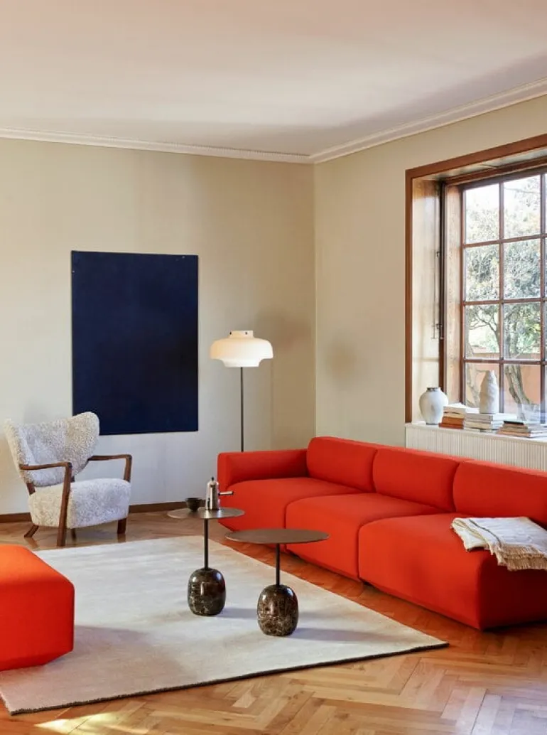 &Tradition’s Lato LN9, designed by Luca Nichetto in 2018, is a sculptural table that combines an oval-shaped walnut veneer top with a luxurious marble base. According to Nichetto, the idea for Lato table came from the shape of a lollipop turned upside down – the slim steel leg and oval-shaped marble base do in fact resemble a lollipop. Growing up at the artisan island of Murano in Venice, Nichetto is used to playing with creative ideas and exploring the boundaries of different materials. Despite its playful source of inspiration, the final appearance of Lato table is calm, refined and timeless. Pair it with the living room’s sofa set or use it as a decorative side table in any room of the house.