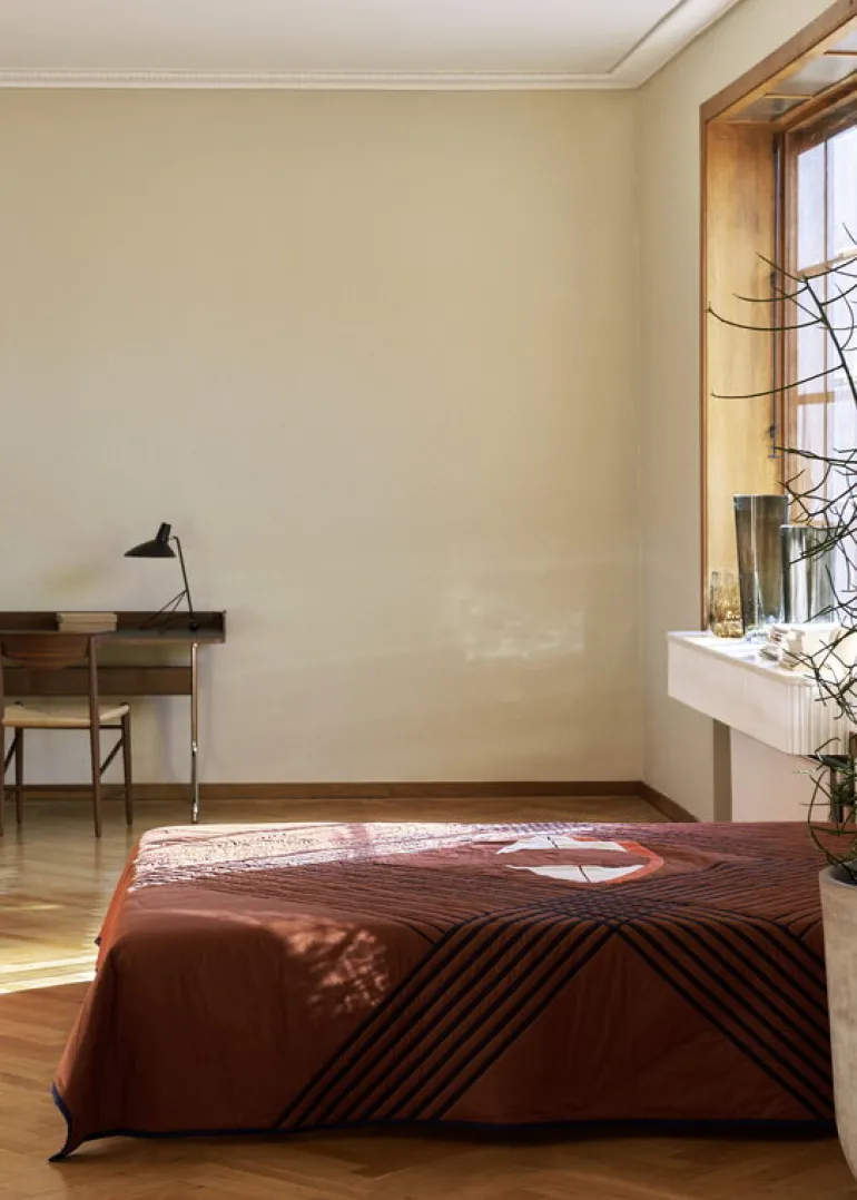 &Tradition’s Pavilion AV17 desk, designed by Anderssen & Voll, follows the sleek, graceful design expression of the duo’s Pavilion chairs. Introduced in 2021, the desk features a slender linoleum-coated top carried by metal tube legs that curve out at the bottom.