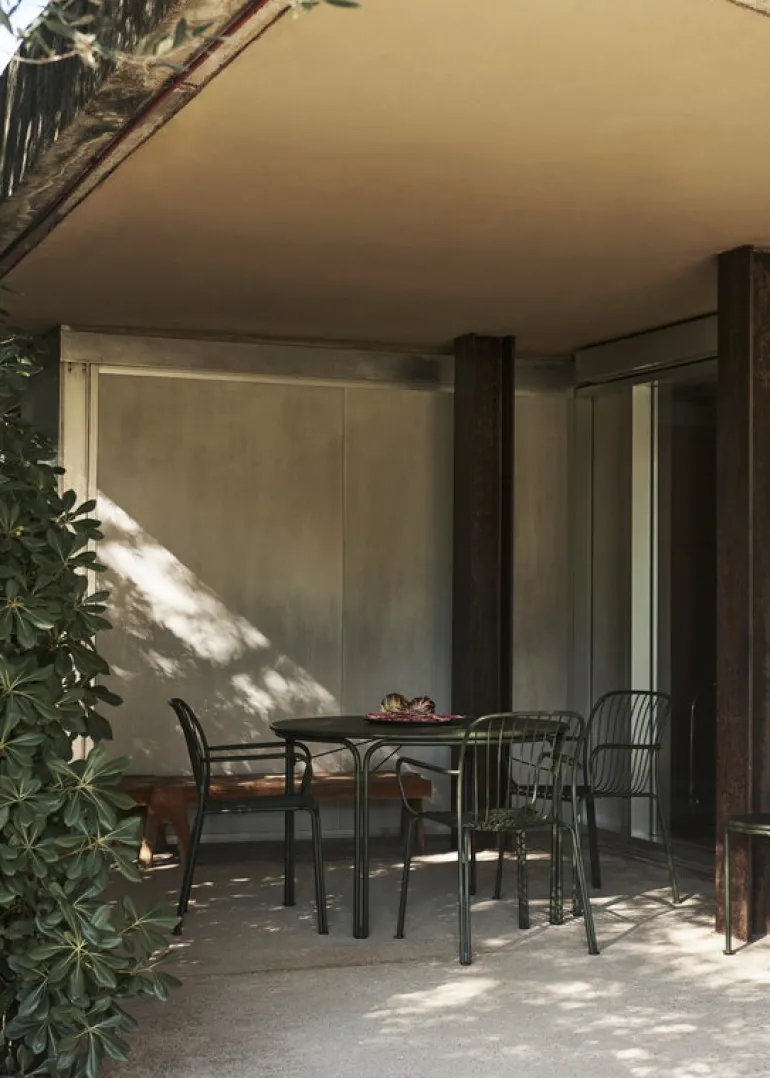 Designed by Space Copenhagen, the Thorvald collection offers a diverse suite of metal patio furniture, echoing the vibrant essence of Copenhagen and playing with sunlight to cast intriguing shadows on the ground. Inspired by the poetic lines of Denmark’s renowned neoclassical sculptor, Bertel Thorvaldsen, and the intricate motifs in his namesake museum, the Thorvald series is designed to animate any outdoor space, from chic urban terraces and snug balconies to spacious summer retreats, in both private and public settings.