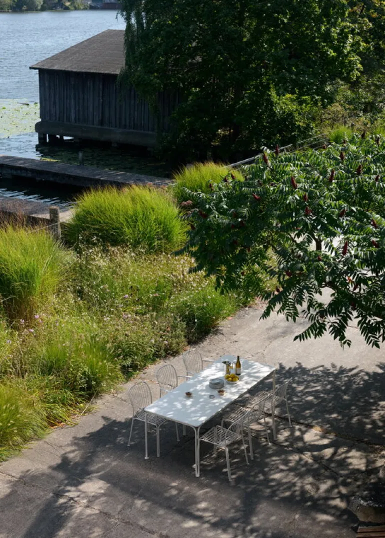 The Thorvald SC99 by &Tradition is a steel-framed dining table designed for outdoor use. Its long, narrow shape provides ample space for alfresco dining, making it perfect for hosting multiple guests – even unexpected guests are more than welcome now! The garden table matches effortlessly with the dining chairs from the same series but also complements various other outdoor furniture styles.