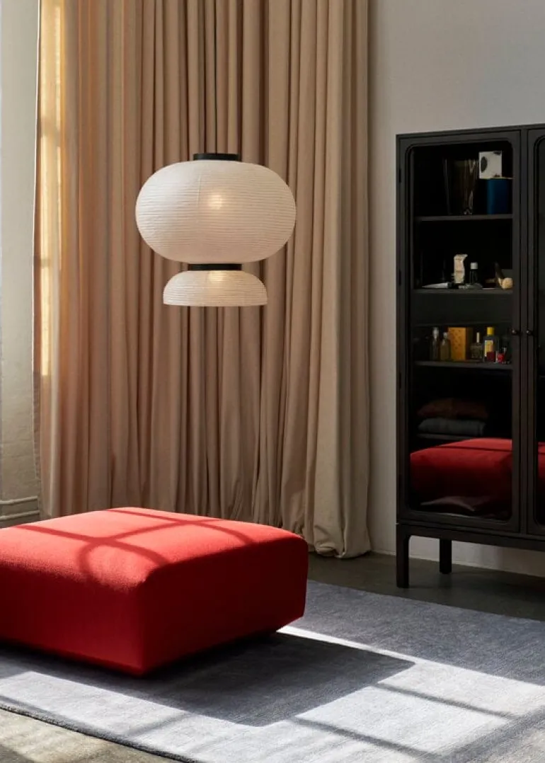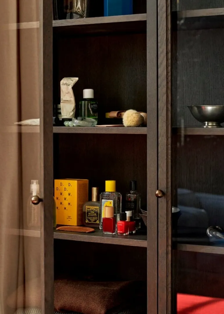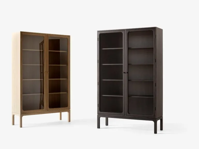 &Tradition’s Trace Double cabinet showcases the most important memories of your life and other little treasures of your home. Designed by Space Copenhagen, the Trace Double SC88 cabinet combines modern esthetics with timeless design – the result is a sleek, understated cupboard that works perfectly in many rooms of the home from the kitchen to the living room and bedroom. The spacious storage cabinet has five shelves and two glass doors through which ornaments, books and tableware are beautifully displayed. Round bronze-plated steel knobs and brass hinges complete the Trace Double cabinet’s elegant look.