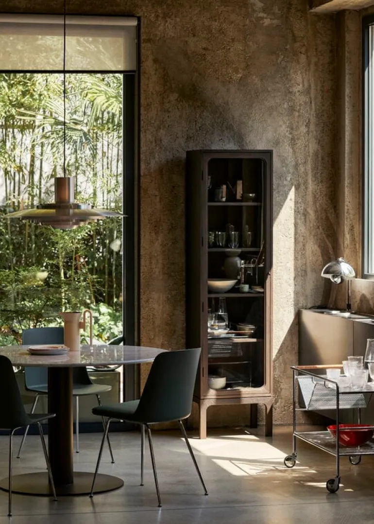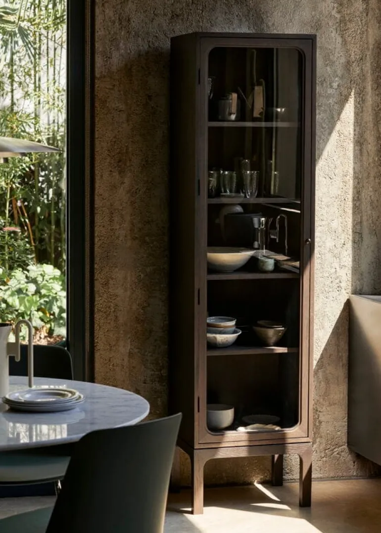 &Tradition’s Trace Single cabinet showcases the most important memories of your life and other little treasures of your home. Designed by Space Copenhagen, the Trace Single SC87 cabinet combines modern esthetics with timeless design – the result is a sleek, understated cupboard that works perfectly in many rooms of the home from the kitchen to the living room and bedroom. The spacious storage cabinet has five shelves and a glass door through which ornaments, books and tableware are beautifully displayed. Round bronze-plated steel knob and brass hinges complete the Trace Single cabinet’s elegant look.