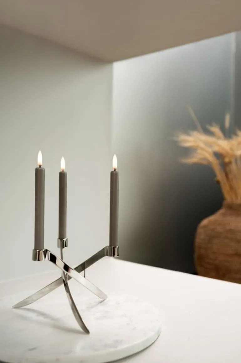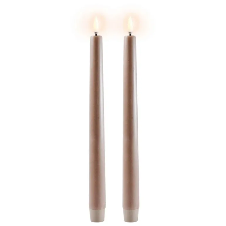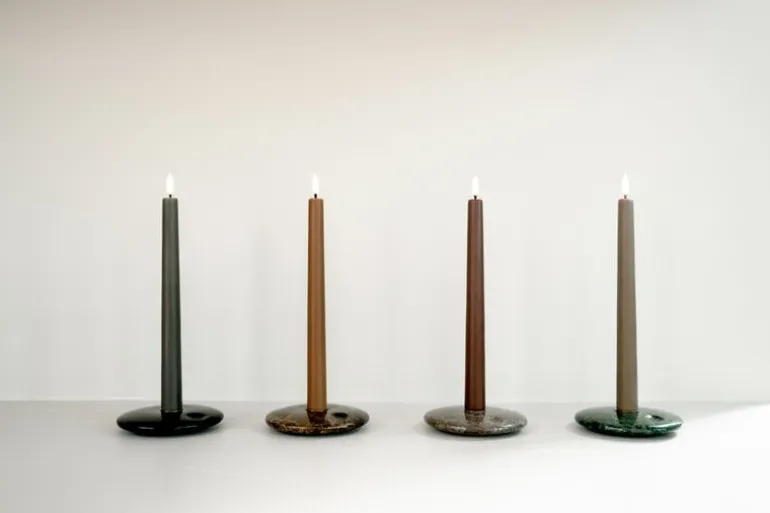 Uyuni Lighting’s LED taper candles are a safe way to create a warm and inviting atmosphere in your home – the kind that can only be achieved with the gentle flicker of a burning candle. The LED candles look deceptively authentic: they are coated with real candle wax and equipped with Uyuni’s patented 3D flame that mimics the fluttering of a regular candle, glowing softly in a warm white tone.