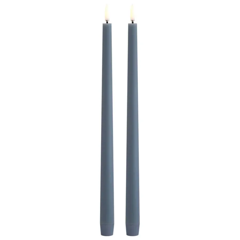 Uyuni Lighting’s LED taper candles are a safe way to create a warm and inviting atmosphere in your home – the kind that can only be achieved with the gentle flicker of a burning candle. The LED candles look deceptively authentic: they are coated with real candle wax and equipped with Uyuni’s patented 3D flame that mimics the fluttering of a regular candle, glowing softly in a warm white tone.