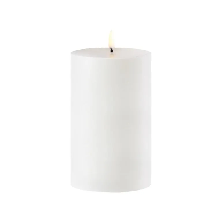 Uyuni Lighting’s Outdoor LED pillar candle is a safe way to create a warm and inviting atmosphere in outdoor spaces – the kind that can only be achieved with the gentle flicker of a burning candle. The water-resistant and UV-protected Outdoor LED candle is equipped with Uyuni’s patented 3D flame that mimics the fluttering of a regular candle, glowing softly in a warm white tone.