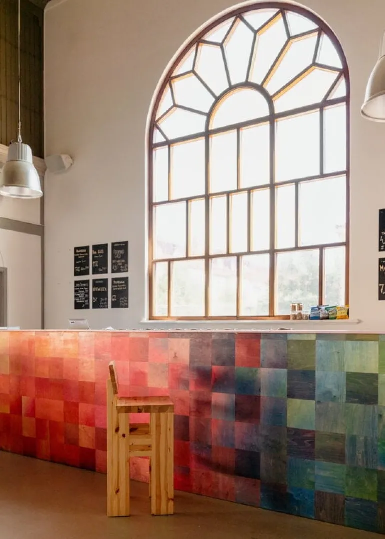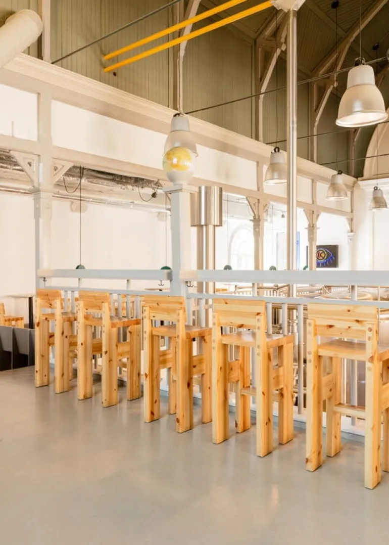 Vaarnii’s pinewood bar stool may look stiff and angular, but thanks to the curved seat, it is surprisingly comfortable to sit on. The dimensions of the chair, designed by Fredrik Paulsen, are also restrained in relation to its sturdy shapes. As a practical detail, there is a groove under the seat, allowing you to pull the chair out more easily.