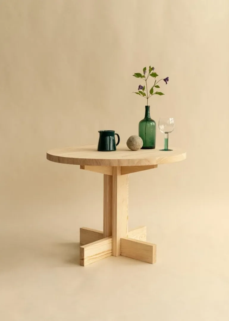 Vaarnii’s round dining table, designed by Fredrik Paulsen, is a bold piece of furniture whose reduced form turns the spotlight to its material, Finnish pinewood. According to the designer, the material’s grain is best described as “psychedelic” and should therefore be used in large areas. What’s more, each table is adorned with a unique grain pattern due to the innate variability of the natural material.