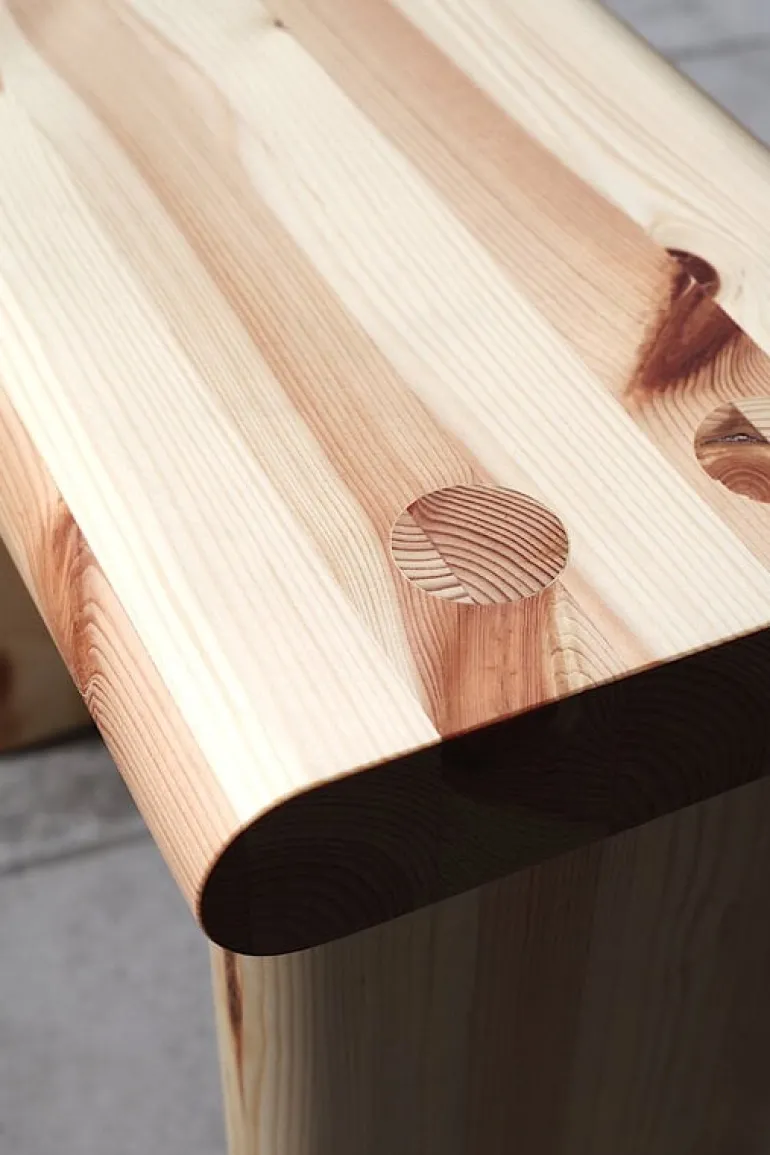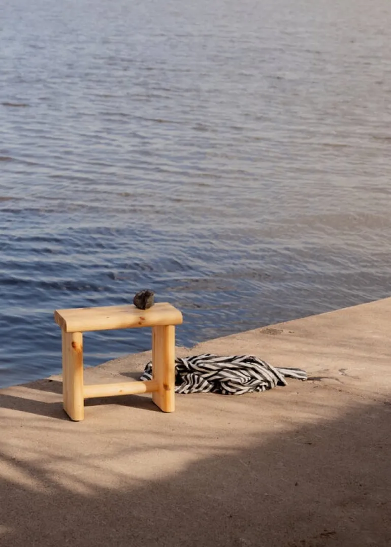 Vaarnii’s Ast stool, designed by Dimitri Bähler, is characterized by an unpretentious design that combines the rustic with the modern. The simple and robust stool consists of thick, sturdy pieces of pinewood, its only decorations being the gently rounded edges and the knots and lively grain typical of pine. The name of the stool, Ast, is German and means “branch”, alluding to the knots that underline the strong yet often overlooked material. In addition to an extra seat, Ast can be used as a nightstand or side table.