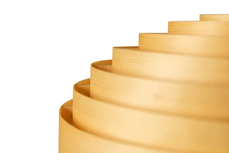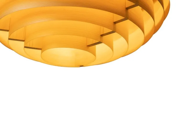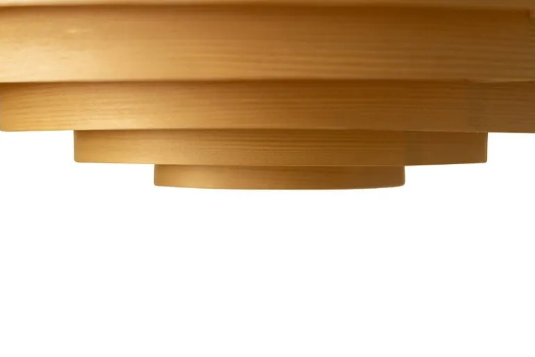 Vaarnii’s Hans XL pendant charms with its graphic round shape and its huge diameter of 70 centimeters. The design of the iconic luminaire is originally from the pen of designer Hans-Agne Jakobsson. Now, Vaarnii has redesigned this classic 1960s ceiling light and replaced the original material with Finnish pine. The natural wood is the perfect choice for a captivatingly beautiful luminaire: the light shines through the living wood surface with a soft honeyed glow, inviting you to come closer. The grain patterns add softness and natural charisma to the look of the ceiling light. The atmospheric glimmer of the large Hans XL pendant is ideal for brightening up dining rooms, kitchens and living rooms, as well as public spaces. Hans luminaires are handmade in Finland.