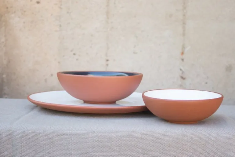 Vaidava’s Earth collection combines Latvian ceramic traditions and minimalist Nordic design. Made of Latvian red clay, the Earth bowls have been glazed with colored, lead-free glaze on the inside, and the unglazed outside has simply been polished smooth. The natural tones and soft silhouettes of the Earth collection frame the food beautifully in both daily and festive table settings.