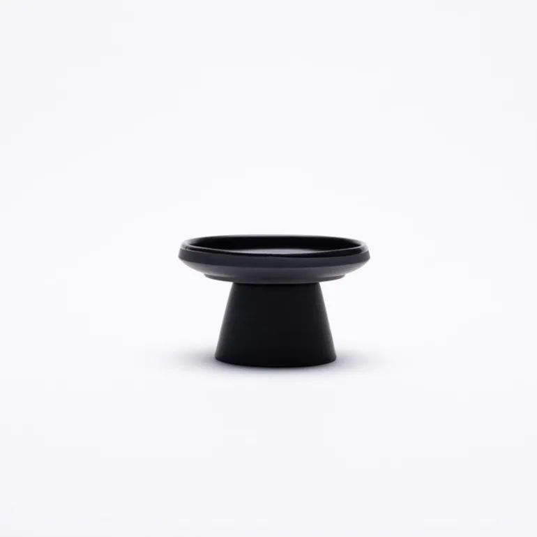 The Eclipse pillar candleholder is part of a series designed by Laima Grigone for the Latvian Vaidava. The ceramic Eclipse collection is made using Terra Sigillata technique that was developed in ancient Rome, and the inside is finished with a lead-free glaze. Characterized by clean, smooth lines and deep black color, the Eclipse range creates a stunning table setting either by itself or paired with tableware of other colors and shapes.