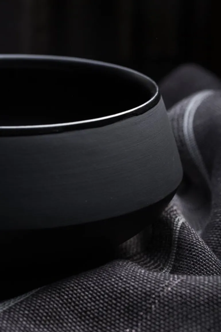 The Eclipse salad bowl is part of a tableware collection designed by Laima Grigone for the Latvian Vaidava. The ceramic Eclipse tableware is made using Terra Sigillata technique that was developed in ancient Rome, and the inside is finished with a lead-free glaze. Characterized by clean, smooth lines and deep black color, the Eclipse range creates a stunning table setting either by itself or paired with tableware of other colors and shapes.