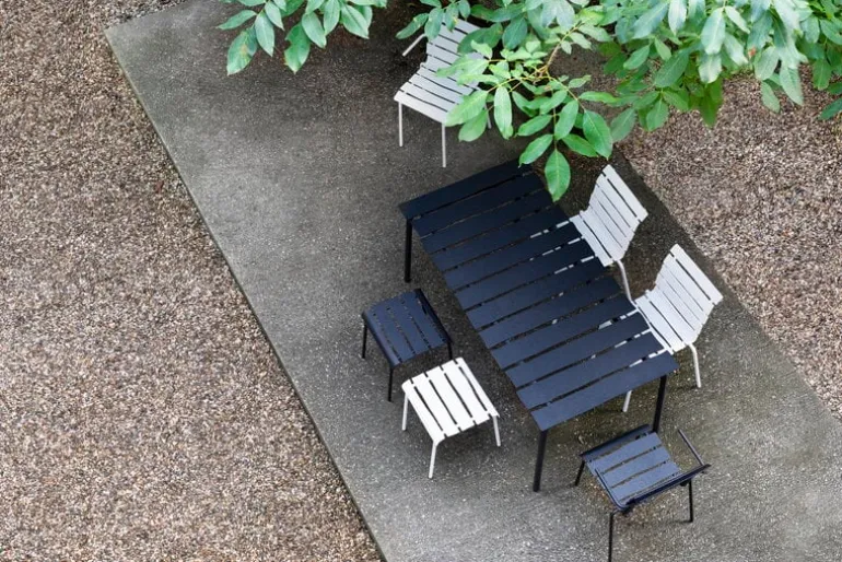 The seemingly simple look of the Aligned dining table by valerie objects takes you by surprise: the asymmetrical slats made of tough aluminum give the understated garden table a whole new kind of personality. A true Maarten Baas design to the core, the imaginative and playful Aligned table has been meticulously created based on the Dutch designer’s pencil drawing. The beautiful and durable outdoor dining table is a delightful addition to both the garden and the terrace of the summer house – and will surely bring a smile to your face one year after another.