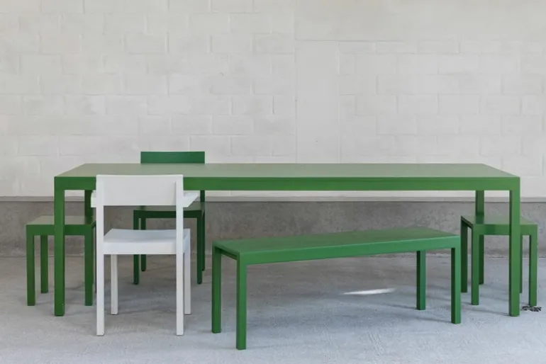 Silent bench by valerie objects has been stripped of all the extra. Designed by BIG-GAME, the Silent collection was born from the designer trio’s desire to create something quiet in a world where there is already enough noise. In search of inspiration, their journey led them to the real chapel of silence: a church. The minimalist design of the Silent bench is a take on the classic church chair, with a modern twist. The contemporary touch is crowned by the seat’s color, which could be described as anything but quiet – so bright and lively it is! Made of solid wood, the bench is the perfect match for other chairs and tables of the Silent collection, but its simple look complements other dining groups and furniture, too.