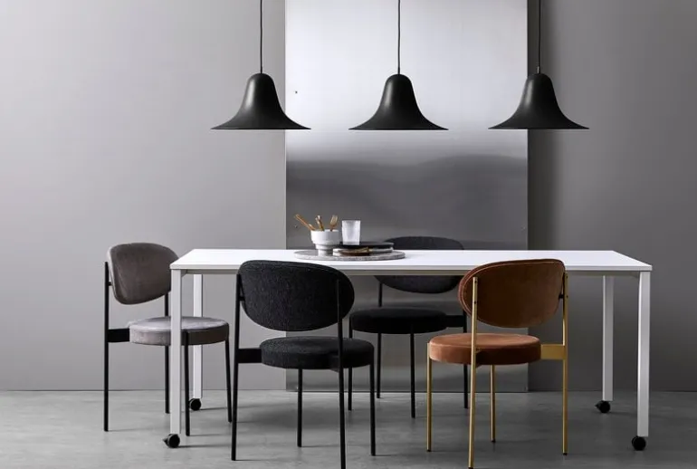 Series 430 chair by the Danish Verpan is a re-release of Verner Panton’s design classic from 1967. Series 430 chair combines a stackable metal tube structure with a round seat and curved backrest softened by a stylish upholstery by Kvadrat.